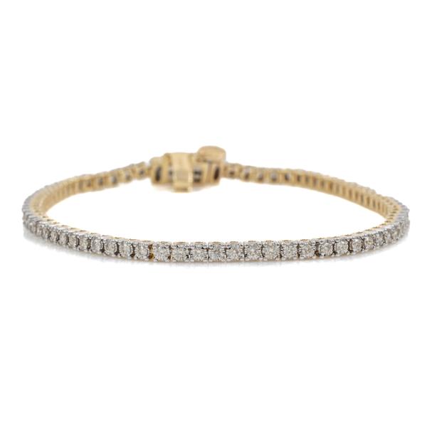 Diamond tennis bracelet with 77 round natural Diamonds totalling 1.03cts (Estimated grading: H-I SI). 14ct yellow gold. Length: 18cm. Weight: 8.1g. (New)