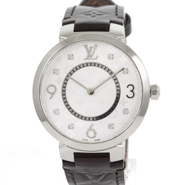 Louis Vuitton Tambor Slim stainless steel quartz ladies watch. Silver dial, Diamond indicators, date, case diameter: 33mm, strap length: 17.5cm, Swiss made. Ref# Q13MJ. With Louis Vuitton brown leather strap and buckle. With Certificate of Authenticity and Louis Vuitton box. 3 month FSA warranty (Pre-owned)