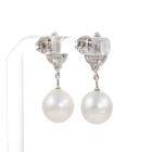 Pearl and Diamond drop earrings with South Sea Pearl of 11.1mm & 11.4mm and round Natural Diamonds totalling 0.31cts (Estimated grading: H SI). 18ct white gold. Weight: 7.9g. (Pre-owned)